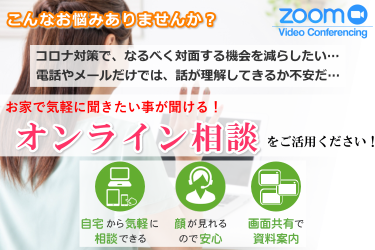そこで、WEB会議ツール“zoom”を活用した「オンライン相談」を受け付けています。