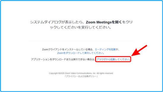 - 次に「ブラウザから起動してください。」をクリックします。